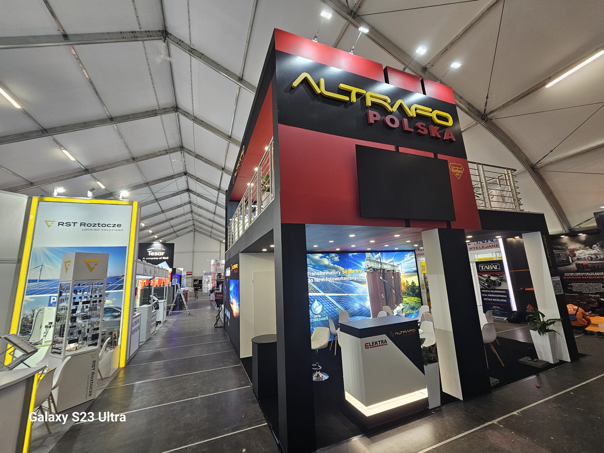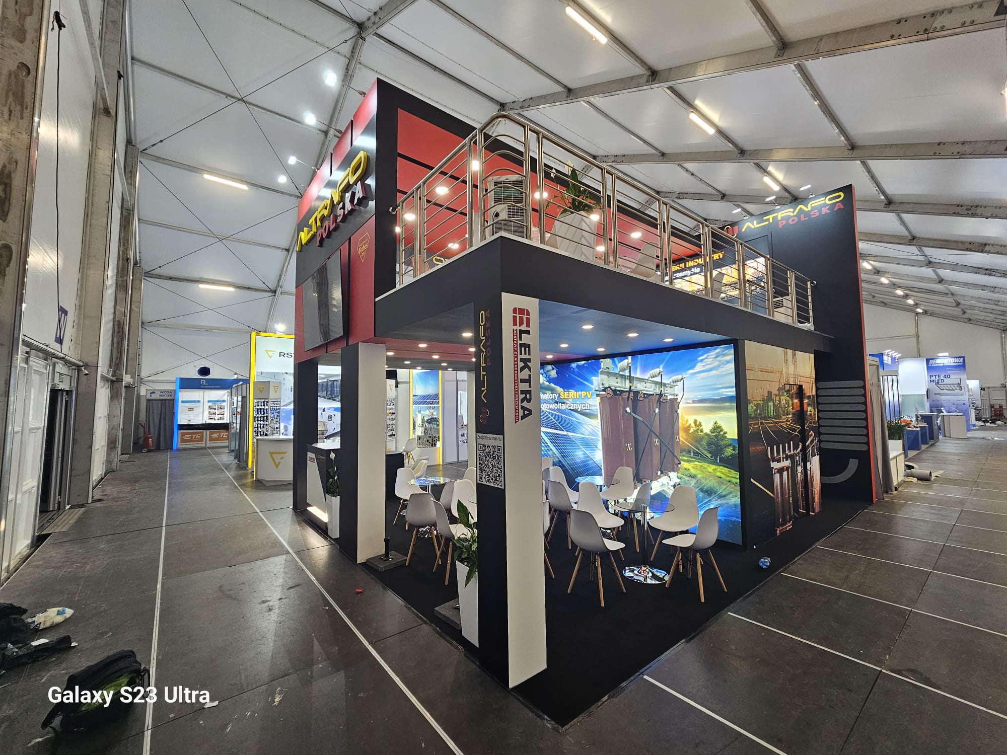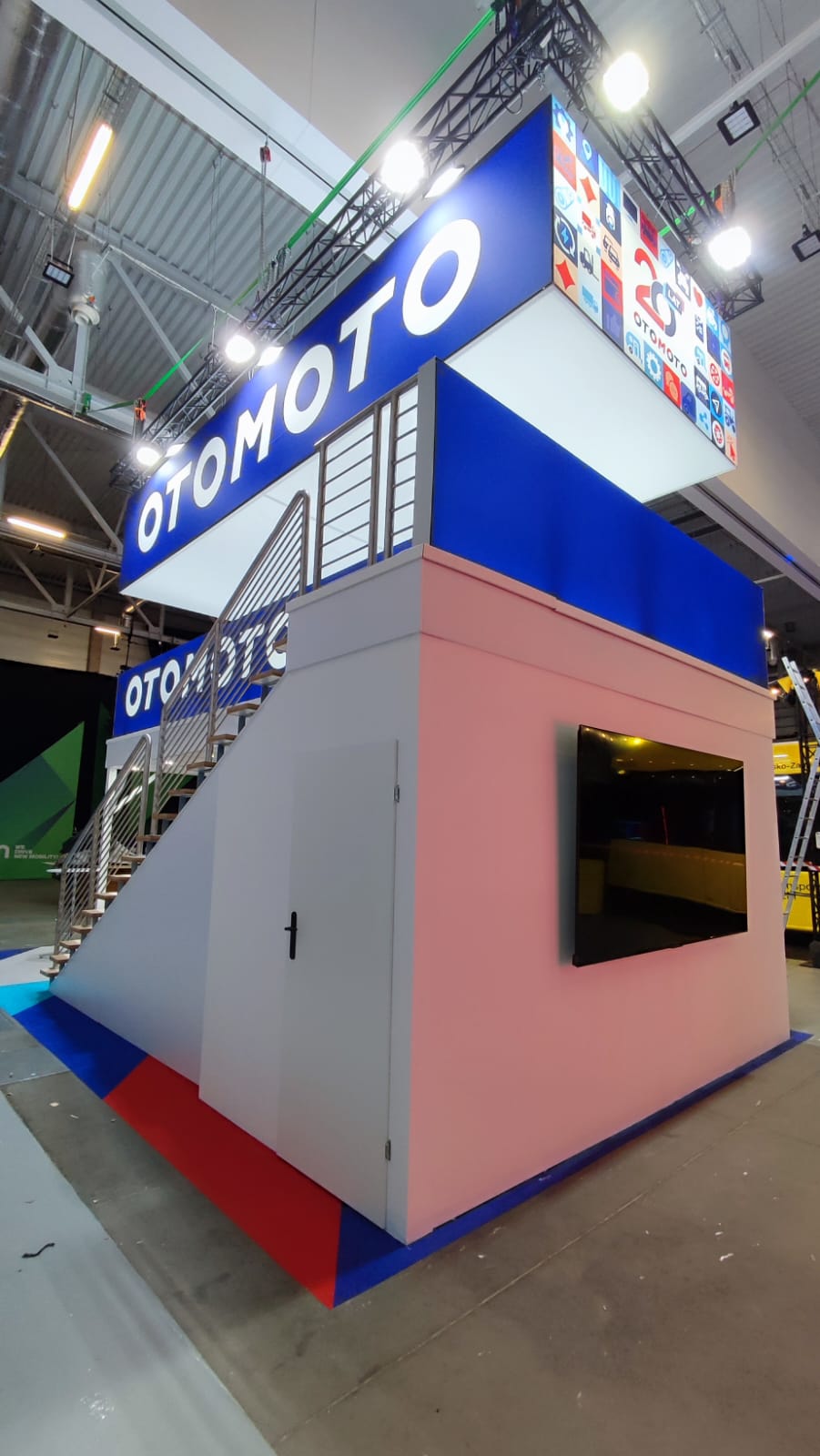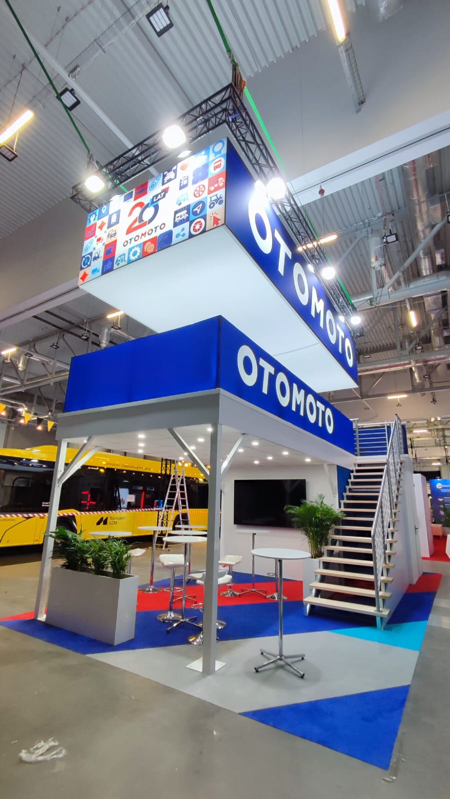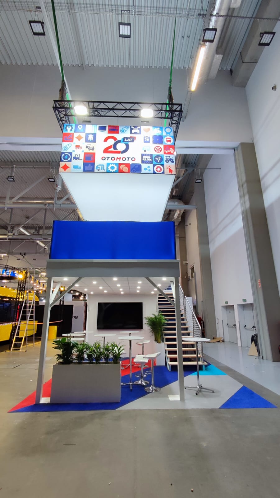 Piętra to zaawansowane rozwiązania konstrukcyjne dla stoisk targowych, które pozwalają na efektywne wykorzystanie przestrzeni poprzez dodanie dodatkowych poziomów. Dzięki piętrom można znacząco zwiększyć powierzchnię użytkową stoiska, tworząc dodatkowe strefy do prezentacji produktów, spotkań z klientami czy multimedialnych ekspozycji. Konstrukcje wykonane z wytrzymałych materiałów, takich jak stal lub aluminium, gwarantują stabilność i bezpieczeństwo. Modułowa budowa umożliwia pełne dostosowanie piętra do indywidualnych wymagań projektu, zapewniając jednocześnie szybki montaż i demontaż. Idealne rozwiązanie dla firm, które chcą maksymalnie wykorzystać dostępną przestrzeń na targach.
