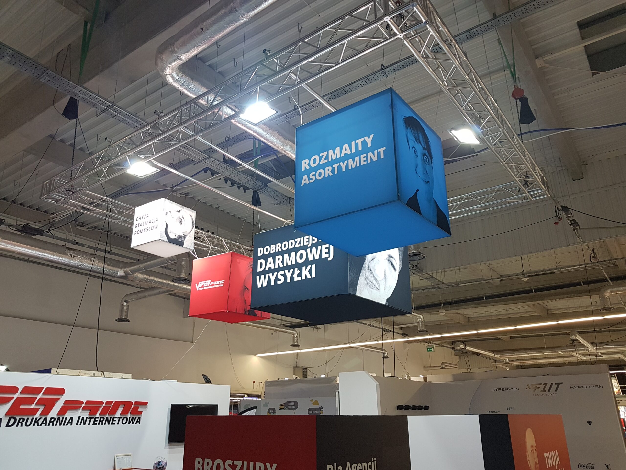 Kubiki / kostki to modułowe systemy wystawiennicze o konstrukcji aluminiowej, z wypełnieniem tekstylnym lub panelowym. Zadruk grafiki metodą sublimacji lub UV. Stelaż aluminiowy z możliwością wyboru koloru zgodnie z paletą RAL. Systemy te umożliwiają szybki montaż i demontaż, z opcją regularnej wymiany grafik. Konstrukcja dostosowana do wymagań klienta, z możliwością konfiguracji wymiarów oraz zastosowania dodatkowego oświetlenia LED.
