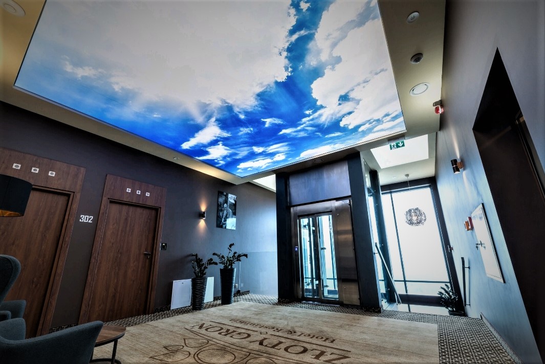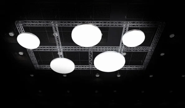 Plafon to system podwieszany o konstrukcji aluminiowej, przeznaczony do instalacji nad stanowiskami targowymi. Posiada ramę wykonaną z profili aluminiowych, z możliwością wyboru koloru stelażu zgodnie z paletą RAL. Wypełnienie tekstylne wykonane z tkaniny poliestrowej, zadrukowane metodą sublimacji lub UV. Plafon wyposażony jest w system oświetlenia LED oraz zawiesia linkowe dostosowane do wagi konstrukcji. Możliwość dostosowania wymiarów do specyficznych potrzeb klienta.